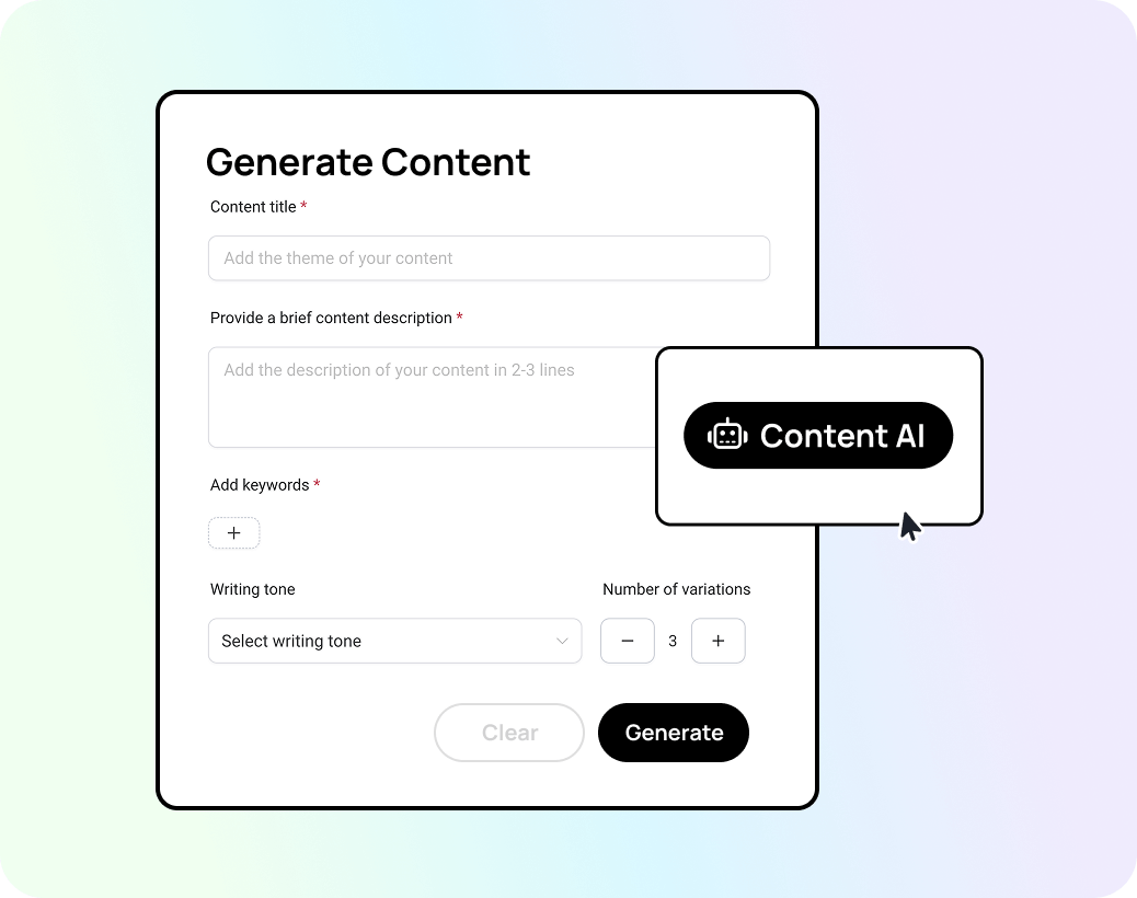 Content AI can generate different email contexts and variations; promotions, introductions, coupons and discounts, recurring newsletters, testimonials, cold outreach... you name it!